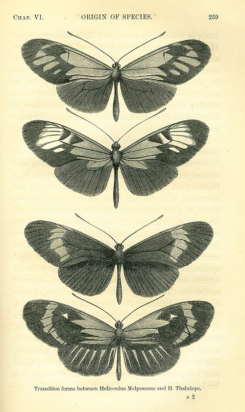 A few remarks on the way races are produced will be here in place. Naturalists have been generally inclined to attribute the formation of local varieties or races of a species to the direct action of physical conditions on individuals belonging to it which have migrated into new localities. It might be said, therefore, that our Heliconius Thelxiope of the moist forests had resulted from operation of the local conditions on H. Melpomene, especially as intermediate varieties are found in districts of intermediate character and position.
